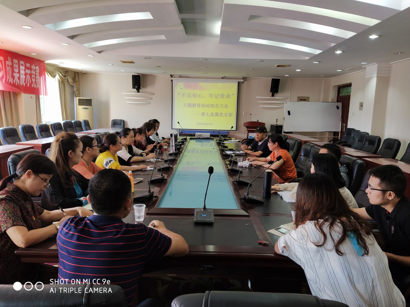 9月19日下午,第七直属党支部在学院三楼会议室召开“不忘初心、牢记使命”主题党日教育活动,学习我校关于开展“不忘初心、牢记使命”主题教育的实施方案。本次会议由周仲秋院长主持,支部全体党员参加。