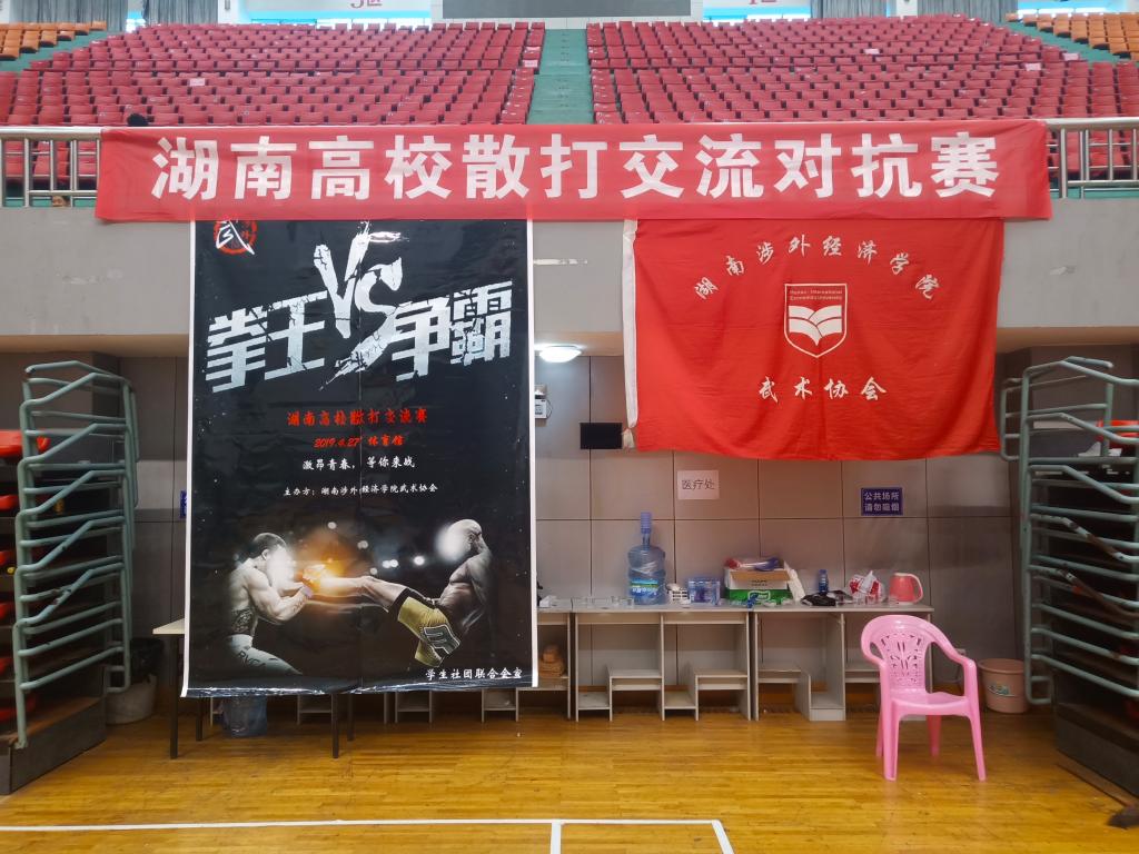 为加强与其他高校之间的交流往来,弘扬中华武术精神,4月27日下午,由我校武术协会主办的高校散打交流对抗赛总决赛在体育馆内正式开赛。此次活动邀请到长沙大学武术协会、湖南第一师范学院武术协会等组织的代表参加。