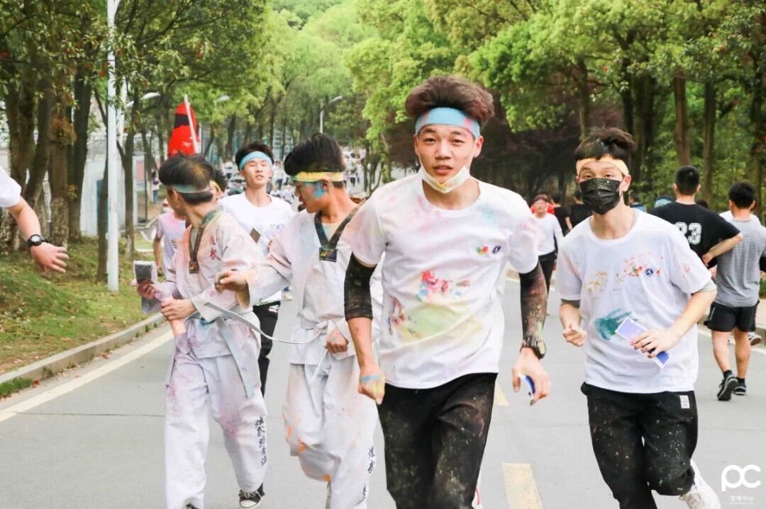 欢乐激情还在继续。广场上,两台泡泡制造机喷出的泡泡象征着混战大狂欢的启动。五颜六色的粉末从一双双手里面撒出去,形成一道道彩虹;四处追逐的身影在一个个帐篷下嬉闹着,留下一幕幕欢笑场面。随着音乐的律动,同学们蹦跳着欢笑着,在这个充满彩色的下午,以笑声和活力画下了结束的句号。