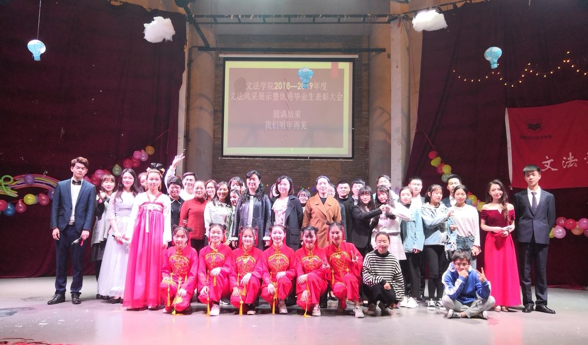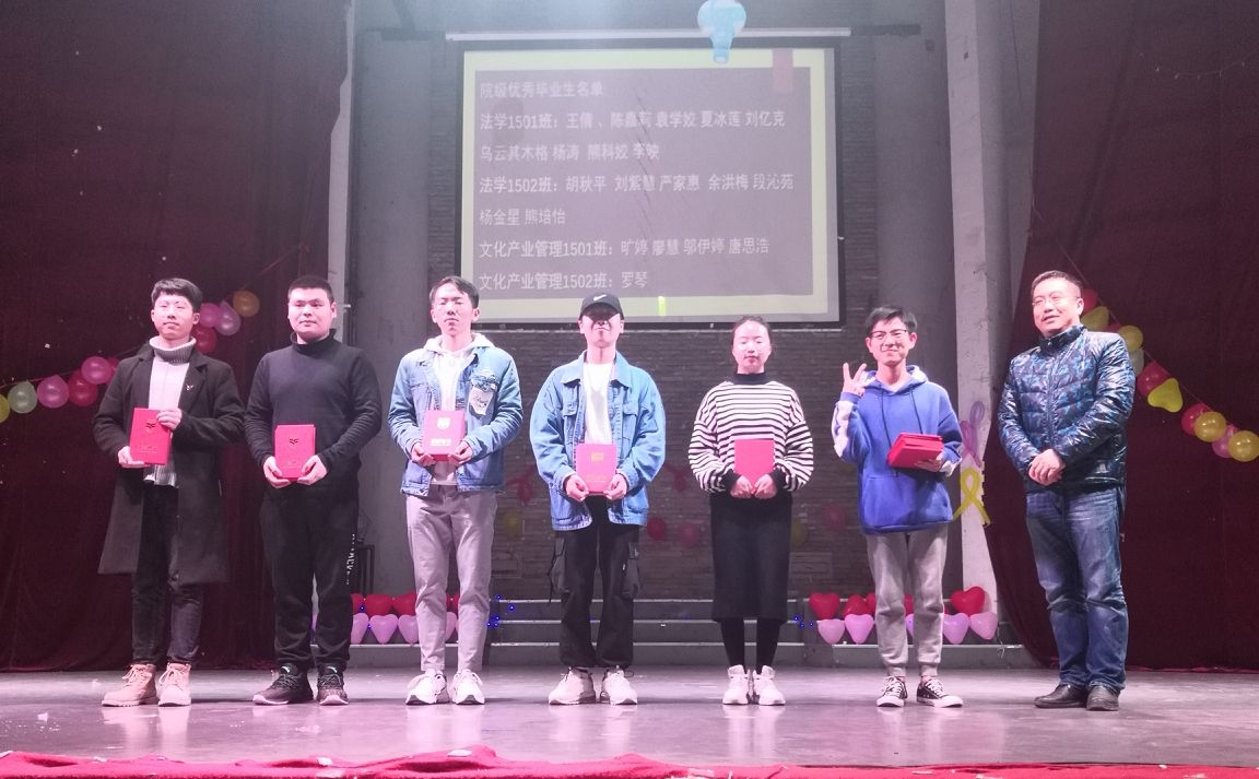 晚会在文化产业管理1802班罗梦妮、李林等同学带来的舞蹈《红灯笼》中拉开序幕。汉语言1805班余沁、杨曦淼等同学演唱的《我从心底深爱我的祖国》,表达了当代大学生对祖国的热爱和美好期望。在观众热烈的掌声中,一轮充满激情的答题竞猜火热上演,各专业的学子们踊跃答题,展现了文法学子的良好风貌与青春活力。汉语言1804班柏学尉、廖文莉等同学演绎的小品《莉莉来上学》幽默间又夹杂着反思意义。精彩表演过后,丁洋书记宣读了优秀毕业生名单并对优秀毕业生四年中为学校所做的贡献致以感谢。最后,刘勇院长为优秀毕业生进行颁奖。