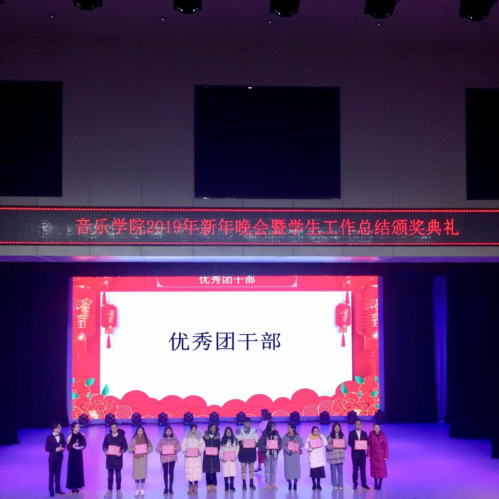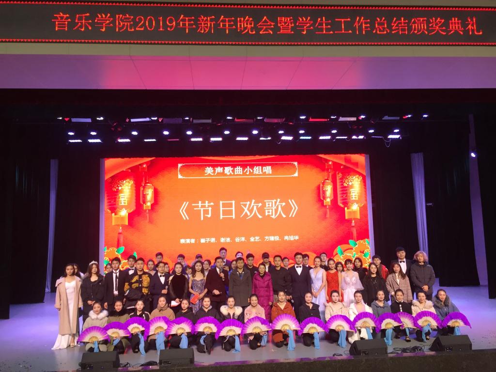 至此,音乐学院学生会换届晚会暨元旦晚会落下帷幕。今夜,音乐学院的学子用歌声告别2018,也用歌声唱响着2019的新篇章。新的一年,学生会的成员将继续用勤奋的汗水谱写华丽的乐章。