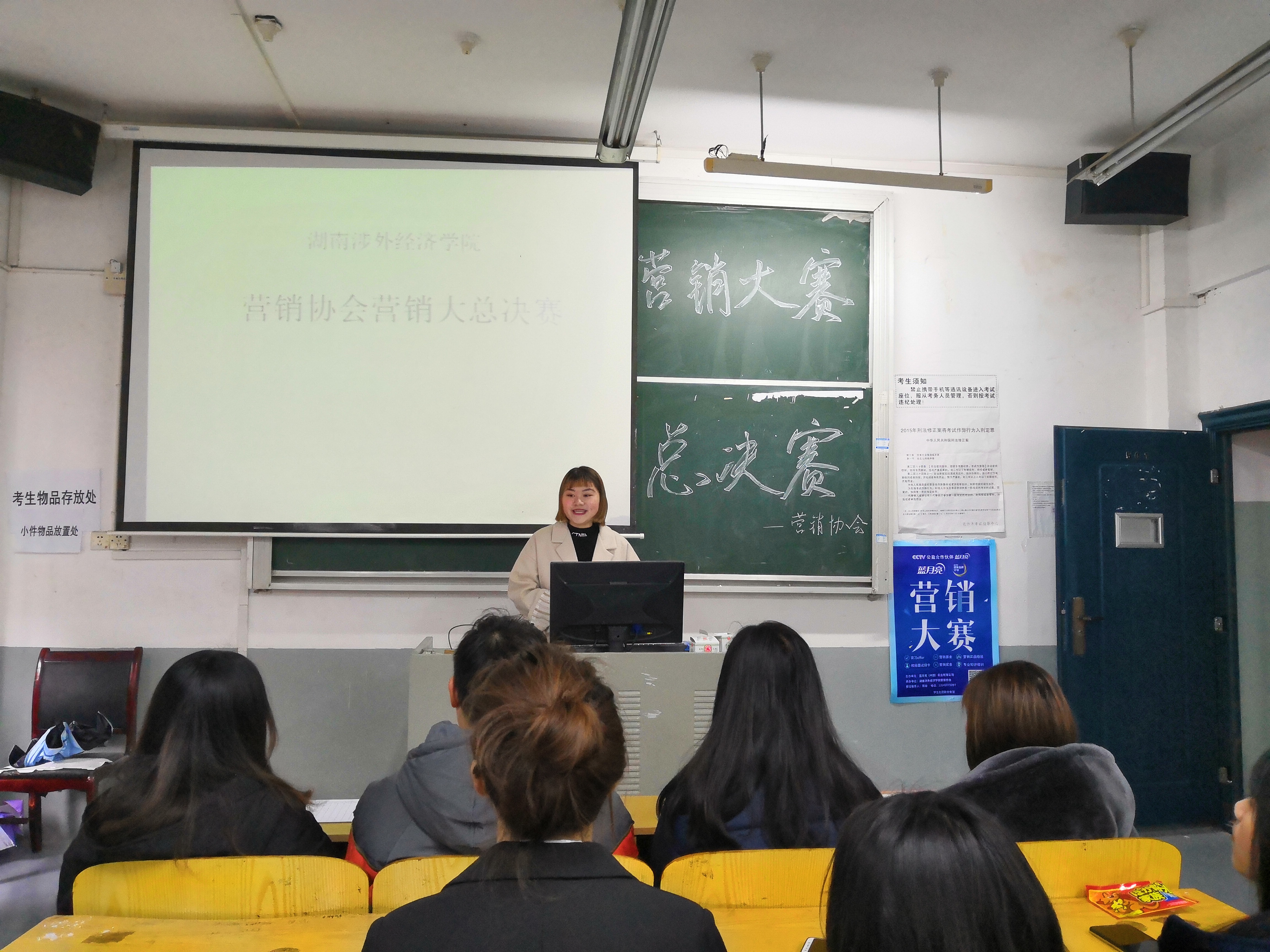 12月29日,营销大赛总决赛在三教501教室组织开展。本次比赛由我校营销协会主办,蓝月亮有限公司赞助。17届营销协会会助胡挺燕、评估部部长刘湘川,18届营销协会会长周璇、会助陈芳、外联部部长闻梦圆,两名蓝月亮公司负责人担任本次大赛评委。
