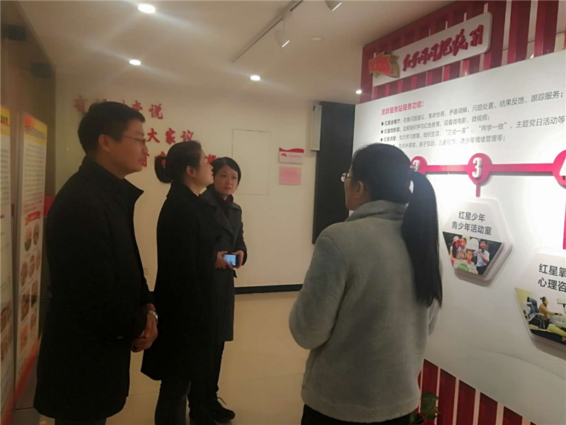 仪式结束后,李部长、蒋部长一行人等参观了红星苑党建工作基地,金茂社区党总支书记程旭同志就红星苑党建开展情况、党建工作经验、社区群众需求、等向我们作了详细介绍。