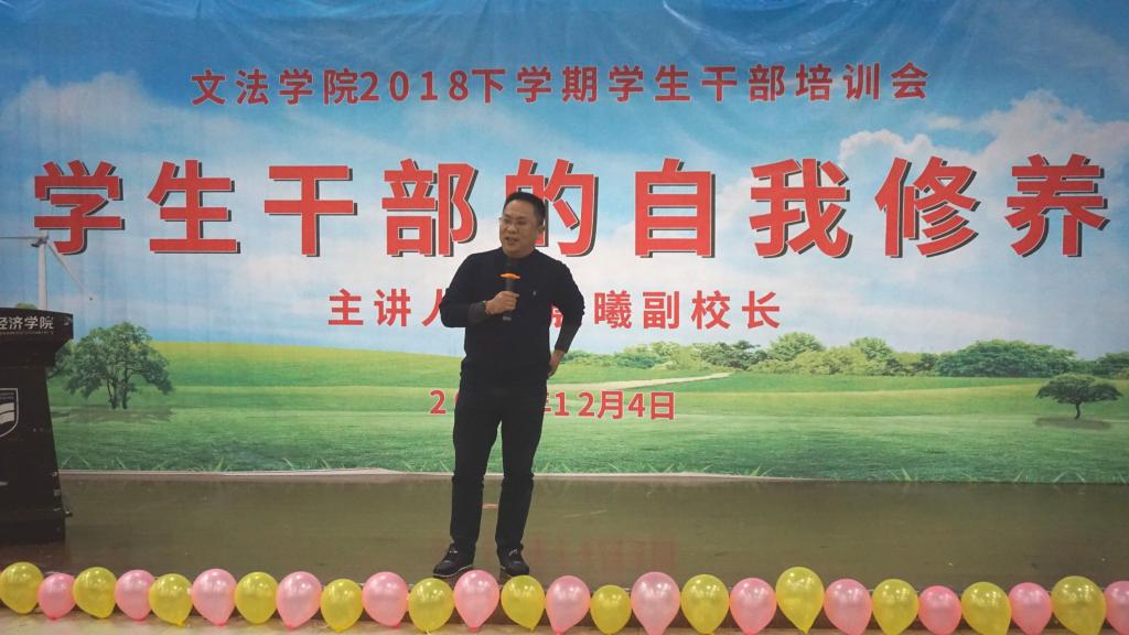 为增强学生干部的责任意识,提高学生干部的自我修养,促进学生组织全面发展,12月4日晚7点30分,文法学院在学术讲堂召开学生组织干部培训会。此次会议由鞠晨曦副校长主讲,文法学院党总支书记丁洋主持。文法学院相关领导、辅导员、学生干部参与此次会议。