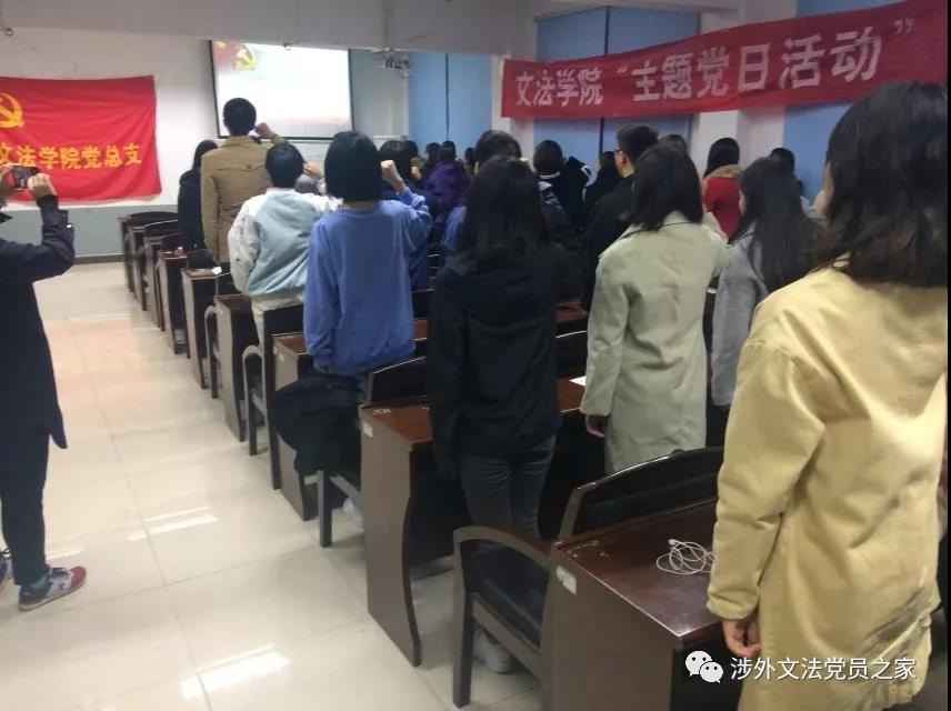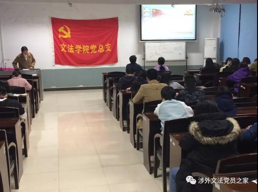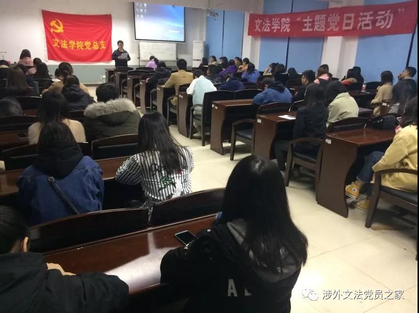 11月8日晚,文法学院党支部十一月主题党日活动在一教503教室举行。学院党总支书记丁洋,张旻老师等出席。
