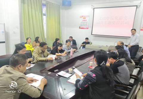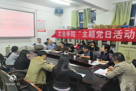 10月11日下午2:30,文法学院教工党支部在一教108室举行了以“全球化时代下如何弘扬爱国主义精神”为主题的爱国主义教育以及如何推进基层党支部“五化”建设为议题的主题党日活动。