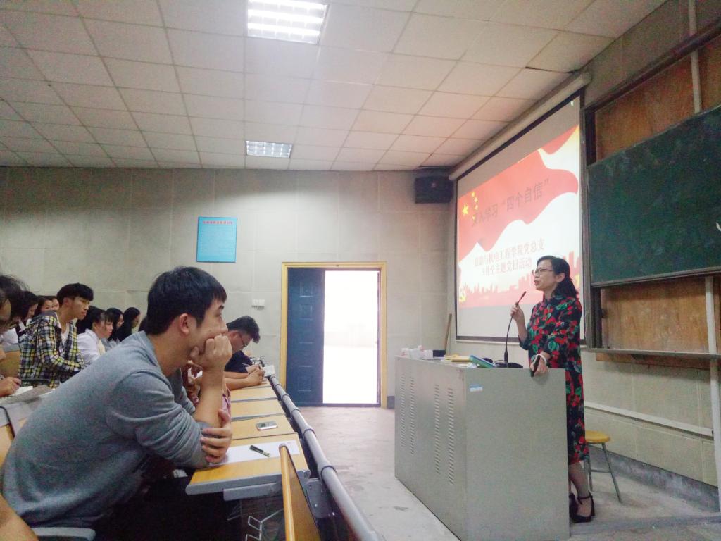 9月28日下午,信息与机电工程学院党总支于六教开展以深入学习“四个自信”为主题的九月党日主题活动。此次活动由信息与机电工程学院党总支书记黄要知、党总支副书记李祥林老师主讲授课,各学生支部书记、学生党员、预备党员、党员发展对象参加学习。