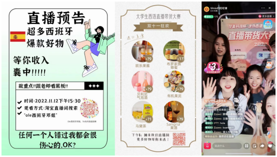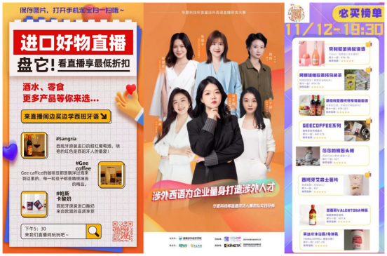 紧接着下午3点30分,外国语学院西班牙语专业直播带货大赛进入到赛事的第六天,本次大赛积极响应国家“一带一路”倡议和教育部“产教融合、校企合作”的号召,旨在聚焦国际形势推动中国和拉丁美洲双边合作关系的深入与发展,锻炼西班牙语专业和其他专业学生的电商平台产品展示能力、新媒体制作能力和语言综合运用能力,鼓励大学生能学以致用,在实践中创新创业,在直播中锻炼策略和技巧。本次大赛得到了学校的大力支持,外国语学院教师们也纷纷涌入直播间围观助阵。