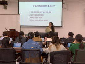 首先,姚佩芝院长阐述了实施青年教师导师制的必要性和意义,并围绕《青年教师导师制的实施办法》,从导师制的工作职责、实施对象、导师遴选与聘期、导师职责及要求等方面进行了解读。她强调,推进青年教师导师制是促进青年教师快速成长的有效举措,对于实现学院人才培养的高质量发展有着十分重要的意义。