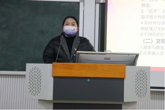 体育学院党总支副书记刘娟详细介绍了学生宿舍导师双管制责任分配与目标要求,其中包括导师安排、目标与常态标准、安全管理以及学习氛围要求。