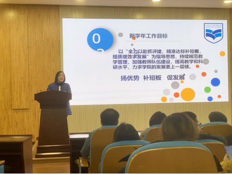 大会最后由姚佩芝院长作总结发言。她指出,外国语学院新学年工作目标要以“全力以赴抓评建,精准达标补短板,提质增效求发展”为指导思想,持续规范教学管理,加强教师队伍建设,提高教学和科研水平,力求学院的发展更上一层楼。