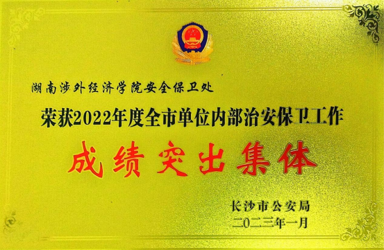 2月10日,长沙市公安局组织召开2023年长沙市公安内保工作会议,会议发布了《关于对2022年度全市单位内部治安保卫工作成绩突出集体和个人予以表扬的通报》,我校安全保卫处荣获“2022年度全市单位内部治安保卫工作成绩突出集体”称号,综治办副主任陈波同志荣获“2022年度全市单位内部治安保卫工作成绩突出个人”称号。
