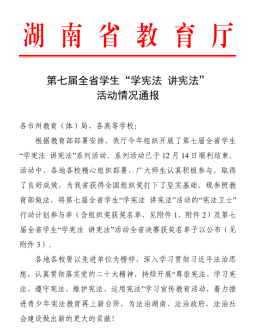 近日,湖南省教育厅公布第七届全省学生“学宪法 讲宪法”活动结果,我校易班发展中心以99.76%的完成率获得本次活动“最佳组织奖”。
