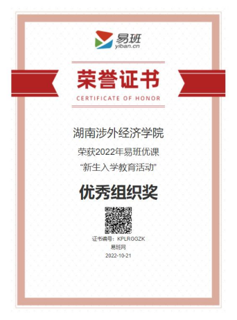 近日,由教育部易班发展中心发起的2022年全国易班优课“新生入学教育”活动评选正式结束。本次活动共有314所易班共建高校创建的1019个课群参与评选,覆盖全国高校165万名2022级新生。在前期充分的准备后,我校在300余所高校中脱颖而出,喜获全国易班优课“新生入学教育活动”优秀组织奖。同时我校易班发展中心指导老师黄振老师获得“优秀指导教师”奖。