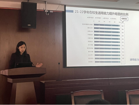 本次研讨活动,学校邀请有关专家对“2021-2022学年学生学习与成长评价报告”“2022年度教师教学与发展评价报告”进行深入解读。专家从学生学习投入、课程教学、成长支持以及教师师德师风、教学投入、发展与资源服务等方面指标数值进行梳理对比,客观分析了学校人才培养效果以及值得关注的问题,对我校在人才培养中的突出亮点与不足进行了总结,提出了改进意见与建议。活动中,与会人员就促进学生成长与教师发展方面的工作进行了交流研讨。