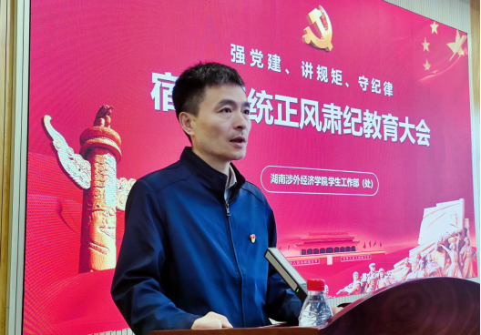 随后他指出,集团近几持续投入巨资对学校宿舍楼等硬件进行大规模提质建设,为师生提供了更加舒适、优美的学习生活环境,学生满意度得到显著提升,为学校各项工作提供了坚实的保障。今年,是学校党建年、迎评促建的关键之年,我们必须坚持党建引领,筑牢战斗堡垒,齐心协力开展和配合相关部门、学院推进各项工作。身为宿管老师,即是楼栋的主要管家,学生的生活导师,同样也是开展思想政治教育的重要力量。“打铁还需自身硬”,学校立德树人,身为高校宿管老师,必须做到修身立德做表率,把廉洁自律实践在行动上。他强调,“无规矩不成方圆”,全体宿管人必须贯彻落实董事长和校领导讲话精神以及鞠晨曦副校长、邝继红部(处)长在宿管培训会上的指示,树立规矩意识,强化责任担当,不断加强政治理论学习,做讲政治、有信念,讲规矩、有纪律,讲道德、有品行,讲奉献、有作为的学生工作者。我们要不忘初心、牢记使命,严格政治纪律,严守《太阳城娱乐宿舍管理员管理办法》和《太阳城娱乐宿管员“十条禁令”》等制度规定,立足岗位实际,干好本职工作,努力做一名合格的高校宿管老师。