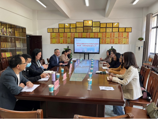 长沙师范学院外国语学院刘宏伟副院长首先代表学院党政班子对我校一行的到来表示热烈欢迎,并简要介绍了学校和学院的基本情况。他表示,虽然两校专业所长各有不同,但在学院发展、专业建设、管理育人等方面有共同之处,此次调研活动旨在双方能加强交流,经验互鉴。