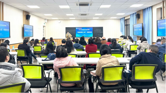 为推动我校教育教学高质量发展,做好高品质线上课程的建设工作,3月23日下午,我校“学银课程上线”专题培训在新综合楼C217智慧教室举行。培训邀请超星集团讲师周奕杏来校作课程上线学银平台专题培训,各学院高品质线上课程负责人及有意近年开展线上课程建设的近60名老师参加了此次培训。培训由教务科科长范顺良主持,教务处相关负责人出席。