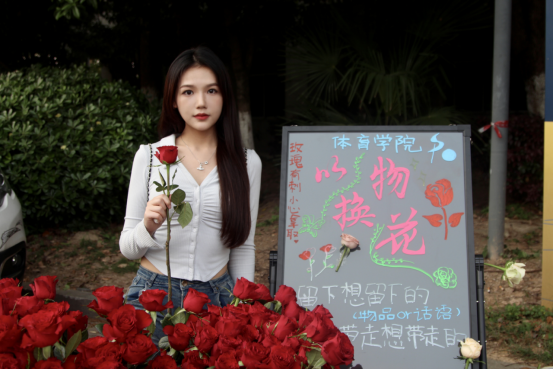 4月17日,我校体育学院团总支学生会在体育馆南门举办第三期校园玫瑰活动,此次活动以“以物换花”形式进行,期望同学们在交换的过程中收获友谊与快乐,让美好与浪漫在校园内传递,让美丽的鲜花给予同学们积极向上的心情。