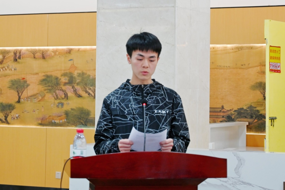 图书馆学生管理协会张驰作为学生代表发言。他认为,阅读是一种探索自我、建设自我并不断完善自我的过程,我们应以开放的思维去阅读,“思接千载,心游万仞”,接续传统,走向未来,时刻谨记习近平总书记“爱读书、读好书、善读书”的谆谆教诲。