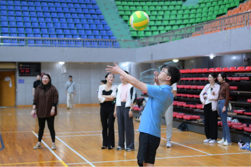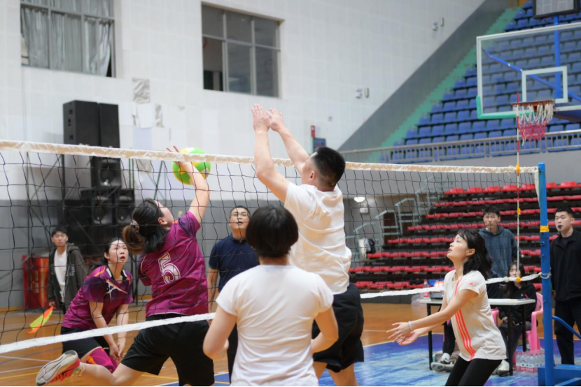 随着一声声哨响,发球、传球、垫跳、扣球、拦网……你扣我拦、我传你打、每球必争,大家各施技能、精彩配合,在场地上左冲右突、攻防转换,小小的排球好像一把钥匙,瞬间开启了赛场边观众的热情,时而欢呼,时而长叹,既为本组加油,也为对手点赞。在文明又不失激烈的运动中,教职工们相互协作,挥洒汗水的同时也舒展了筋骨,增强了体魄。