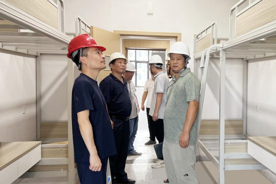 凌再明和杨建波仔细查看寝室装修细节和家具配置情况,着重询问项目负责人装修施工和家具安装进度情况。同时,提醒项目负责人要严格按照集团和学校要求,在确保施工安全的前提下按时按质保量完成项目建设。