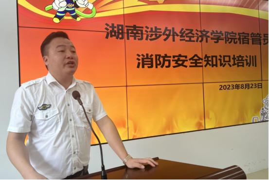 公寓园区管委会主任肖丽萍、成丽辉、戴忠清以及公寓管理科专干徐正春和优秀宿管老师佘春华,分别以《楼栋业务技能培训》《台账及宿管系统记录规范》《如何提升楼栋学生干部积极性》《资产及数据管理》《楼栋工作经验分享》等主题就规章制度、日常工作内容等方面进行了培训和分享。同时,还特别邀请了安全保卫处陈波、漆光剑科长和湘安消防公益服务中心主任王松清等为宿管人员进行了应急消防安全培训和灭火实操演练。