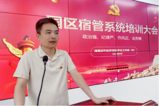 培训会上,杨建波从明确角色定位、明确工作内容、明确工作要求、明确考核细则、明确问题导向等五个方面,对宿管人员的工作提出了具体要求。同时,结合日常工作实际,对宿舍管理工作的重点难点进行剖析,提出注重安全管理、加强文明创建,强化精细管理,提升服务意识,推进社区建设、落实协同育人。最后,他要求大家立足岗位,脚踏实地,恪尽职守,成为一名合格的高校宿管老师。