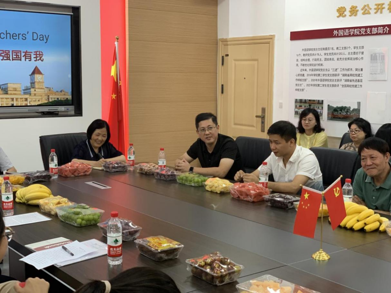 9月8日上午,在第39个教师节来临之际,外国语学院在113会议室召开了“躬耕教坛,强国有我”为主题的座谈会。校长王耀中、党政办主任邓青林,外国语学院院长姚佩芝、党总支书记尹理智、副院长曾望、教师代表与新入职教师50余人欢聚一堂,共庆教师佳节。座谈会由姚佩芝院长主持。