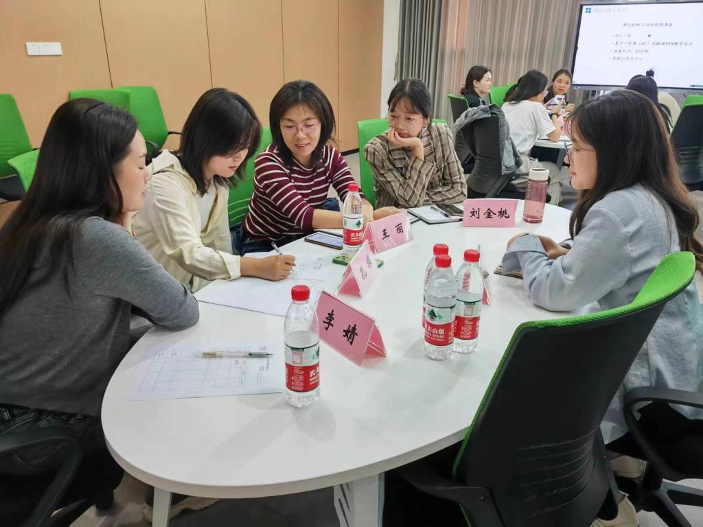 培训中,刘鸣老师对BOPPPS教学模组的六大结构做详细的内容说明,即导言(Bridge-in)、学习目标(Objectives/outcomes)、前测(Pre-assessment)、参与式学习(Participatory Learning)、后测(Post-assessment)、摘要/总结(Summary),并结合教学场景举例如何使用。各小组按照六大结构集思广益、互相学习、协同调整教学设计,准备模拟片段,派代表进行阶段性展示。