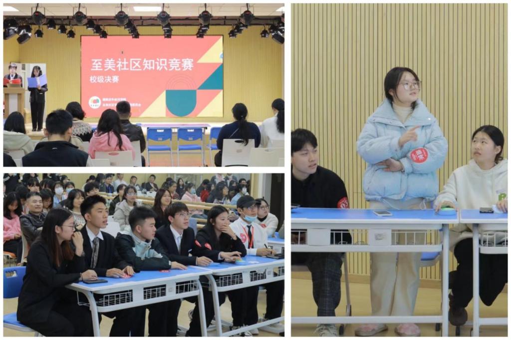 11月29日,在学校新综合楼C113活动室举行的社区知识抢答赛的决赛中,外国语(国际教育)学院东14楼栋的袁嘉怡团队获得冠军,商学院东14等楼栋的刘嘉丽团队和人文艺术学院东12等楼栋的庞西凤团队获得亚军,信息与机电工程学院东13等楼栋周东洋团队、体育学院西18等楼栋姚鑫宇团队、音乐学院西14等楼栋刘聪团队获得季军。
