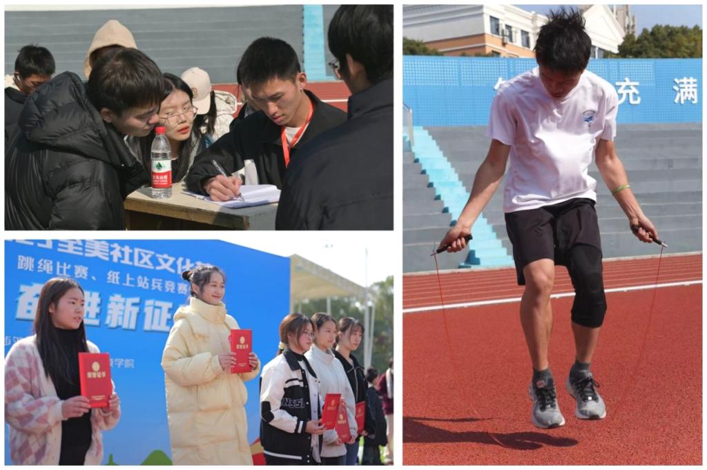 12月1日,在学校田径场举行的纸上站兵竞赛的决赛的男生组中,商学院南2栋舒星源团队获得冠军,人文艺术学院西2栋李君禹团队和体育学院西10栋周家盛团队获得亚军,信息与机电工程学院西22栋李文龙团队、音乐学院西9栋张少轩团队、外国语(国际教育)学院东13栋刘敬群团队获得季军;女生组中,音乐学院西13栋郭文靓团队获得冠军,信息与机电工程学院西7栋蒋玉碟团队和外国语(国际教育)学院东12栋陈萱琪团队获得亚军,人文艺术学院西6栋戴梦瑶团队、体育学院西6栋邹佳慧团队,商学院西8栋刘莉团队获得季军。