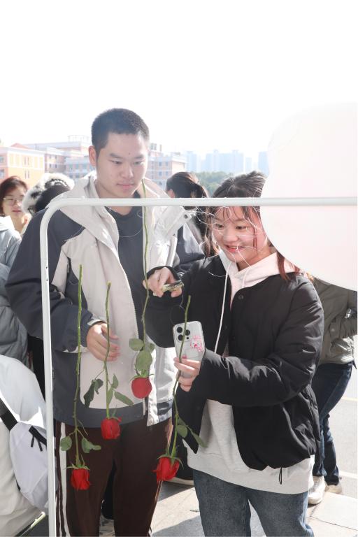 “爱自己,是终身浪漫的开始”、“发光不是太阳的权力,你也可以”“是微风,是晚霞,是心跳,是无可替代”这几句标语在活动现场引起了很多同学的共鸣,他们表示在冬日里有一场如此浪漫的活动,感觉非常的暖心,对于“爱”的认识和定义也有了更多的了解。一根根丝线就像万千烦恼,一枝枝玫瑰却悬挂其中,“剪断烦恼,带走愉悦”,愉悦不仅是隐藏的玫瑰,也是太阳城娱乐学子对生活的每一份期待。