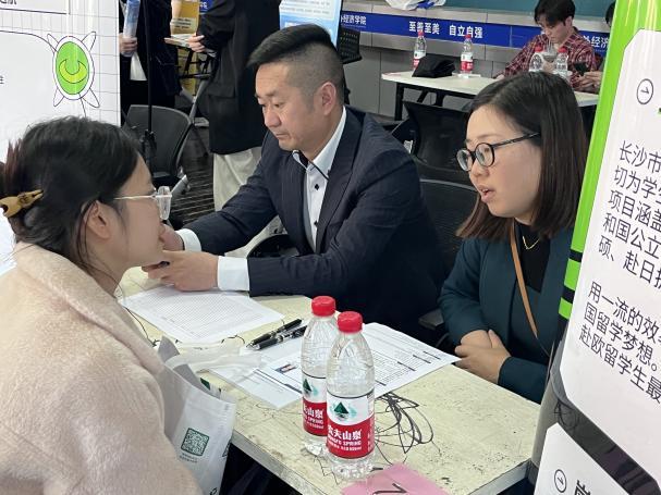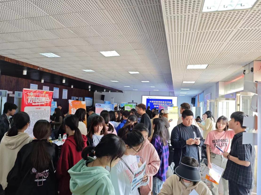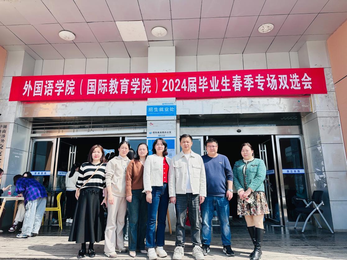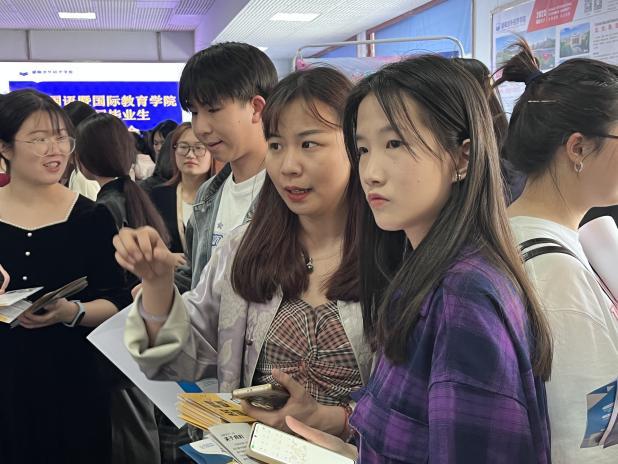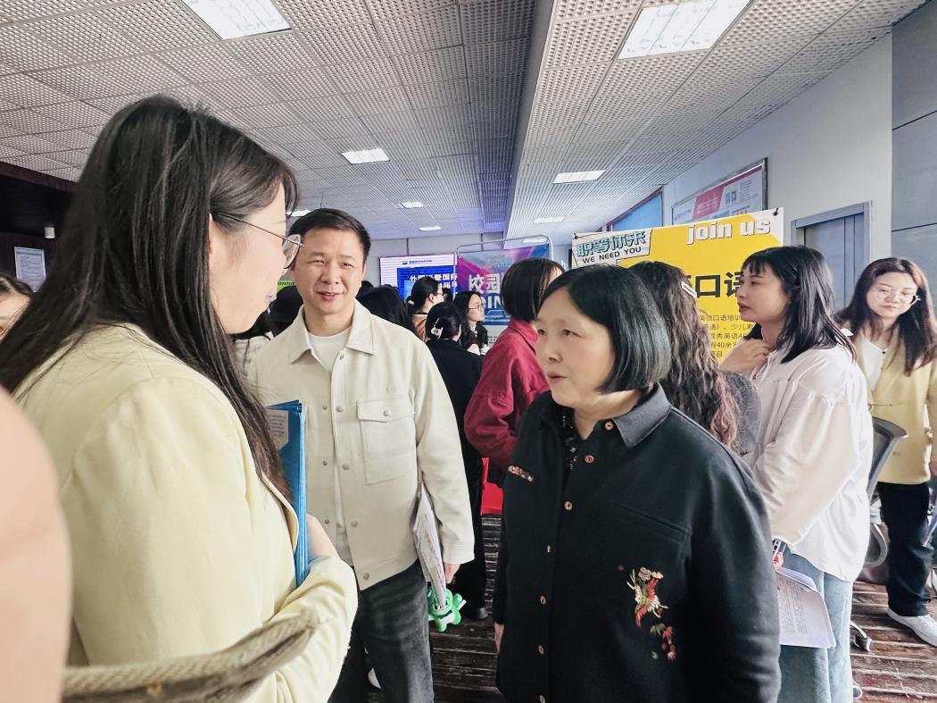 3月28日下午,外国语暨国际教育学院2024届毕业生春季双选会在招生就业楼一楼大厅顺利召开。此次春季双选会,学院精心组织,云集了全国近50家优质企业,提供岗位近800个,为毕业生提供更加高质量的就业机会,搭建人才供需对接桥梁。外国语学院院长姚佩芝、党总支书记尹理智、就业专干张蓉及毕业班辅导员们到场与用人单位热切交流并指导2024届毕业生求职。