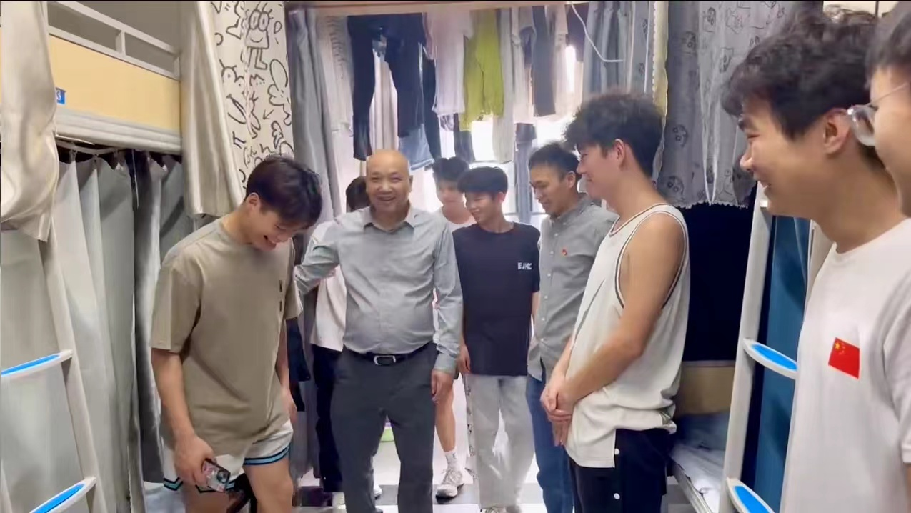 饭后,同学们邀请汪东明副校长去宿舍看看,他欣然答应,与同学们一起步行到西11栋。汪东明副校长在体育学院休闲体育专业的学生宿舍,看到干净整洁的寝室,再次对他们进行了表扬,并鼓励他们再接再厉乘势而上,继续保持好势头好状态。随后,他与西11栋517宿舍全体同学及宿舍管理主要干部和辅导员进行合影留念。