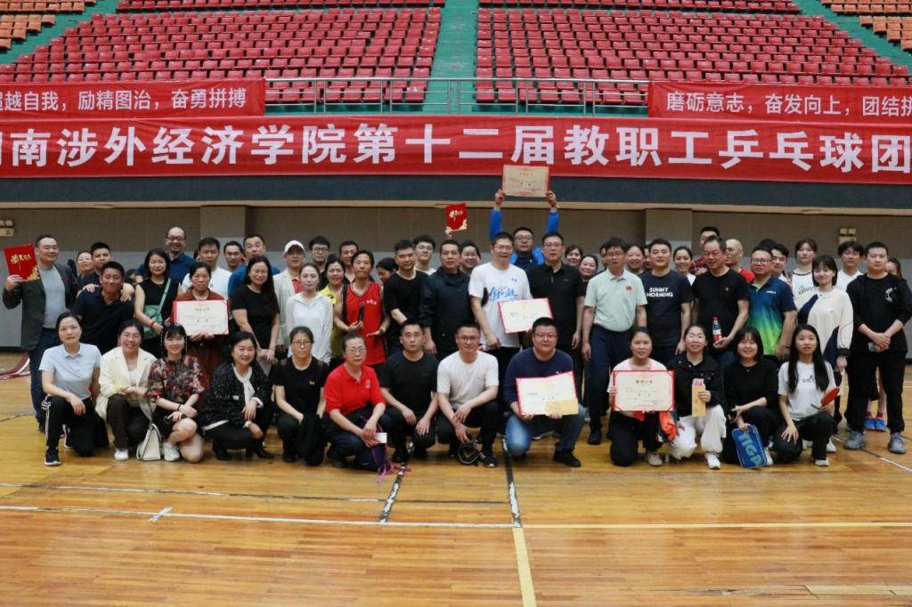 比赛充分展现了乒乓球的独特魅力以及教职工们拼搏进取的精神。经过紧张激烈的对决,商学院分工会代表队荣获团体赛第一名,外国语分工会代表队荣获团体赛第二名,机关分工会代表队荣获团体赛第三名;体育学院、人文艺术学院、教务处、图书馆、工学院等分工会代表队分获团体赛第四名至第八名。