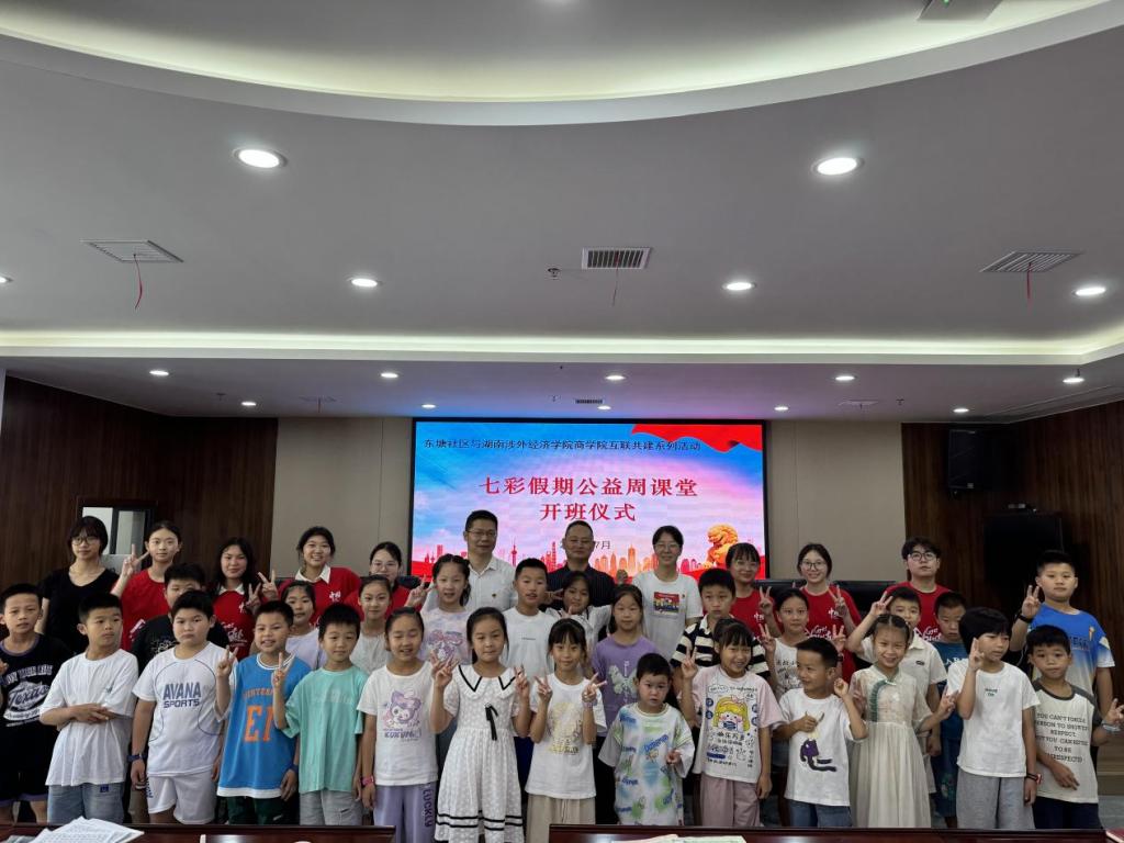 7月4日上午,“商小蚁”志愿服务队在东塘社区共同启动七彩假期公益课堂。商学院党总支书记李向明、东塘社区党总支书记蒋科,志愿服务指导老师唐慧萍及学生志愿者一同参加开班仪式。此次公益课堂涵盖爱国教育、心理健康,传统文化及趣味运动等方面,旨在关心关爱青少年的成长,提高青少年的身心综合素质。