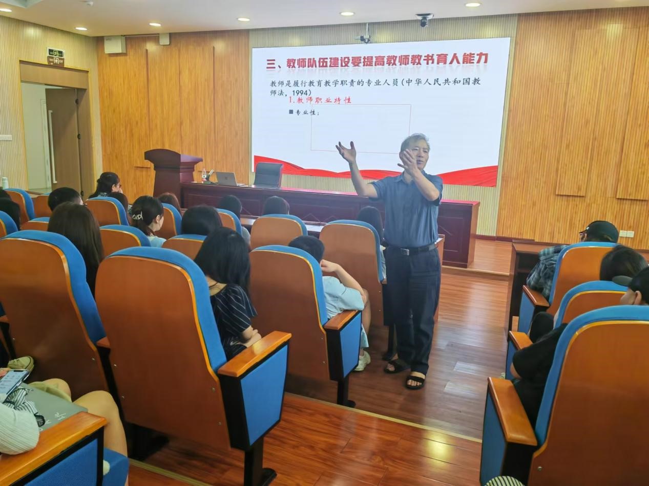 为深入学习贯彻党的二十届三中全会精神,加快建设高质量教育体系,统筹推进育人方式,9月13日上午,人力资源处(教师教学发展中心)邀请我校马克思主义学院教授、博士生导师姚利民在综合楼裙楼 D202开展 “加强教师队伍建设,夯实教育强国根基”专题培训,来自各二级学院“育人育才师资培训工程”实施对象155人参训。讲座由人力资源处副处长彭伊凡主持。