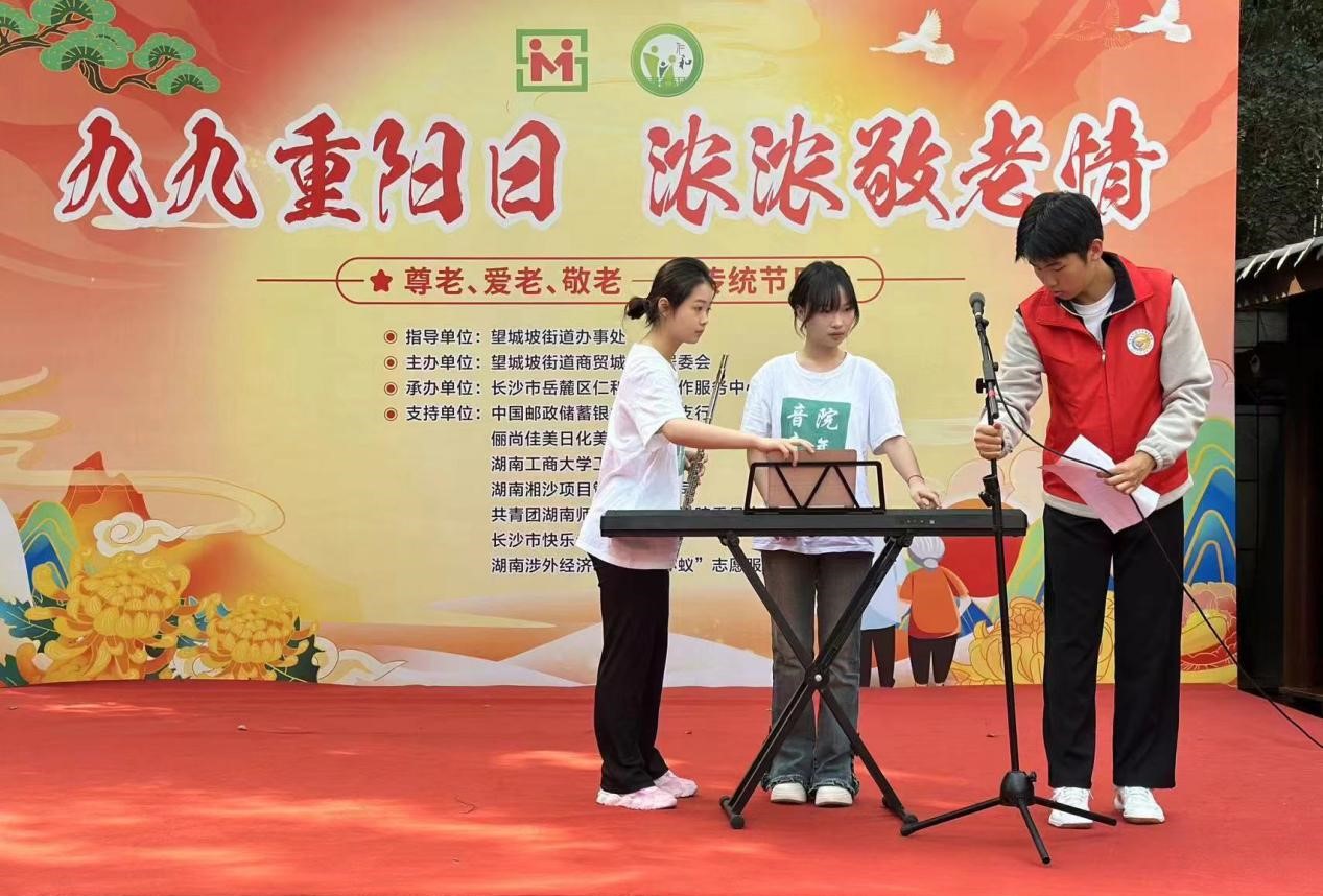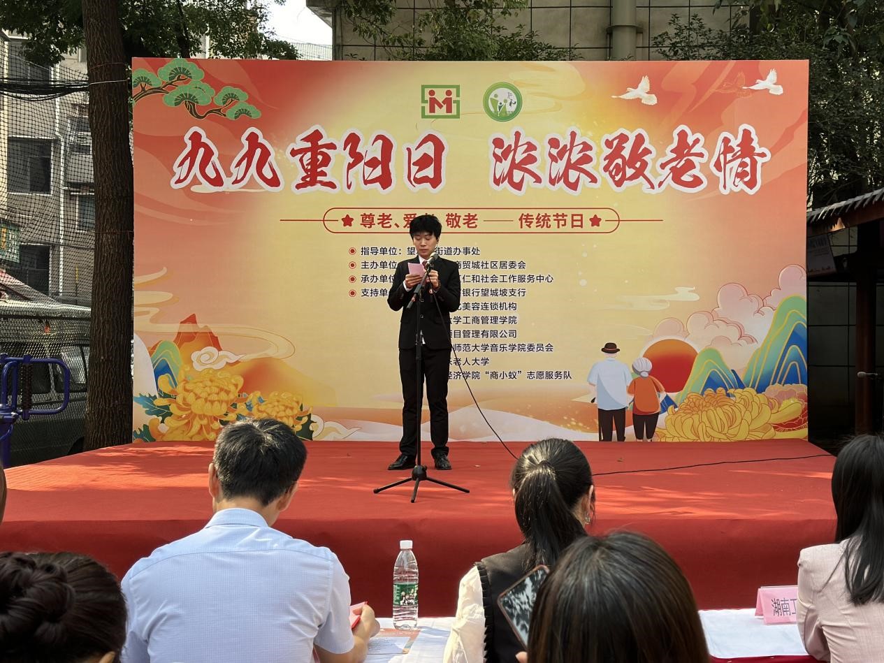 本次汇演活动由“商小蚁”志愿者梁帅屹主持,志愿者们为老人们送上了真挚的节日祝福。