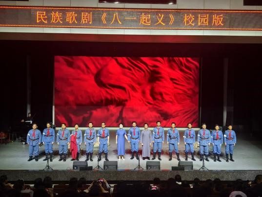 为引领广大师生更好地缅怀革命先烈,赓续红色血脉 ,推进学校“党建+学生素质教育五项工程”,10月11日晚,我校音乐学院在音乐楼实验剧场,举行了一场震撼心灵的红色经典歌剧盛宴——《八一起义》校园版。此次演出由音乐学院声乐系青年教师吴珊担任指导教师,40余名音乐学院学子倾情演绎。