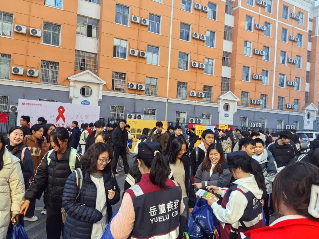 11月29日,我校联合长沙市岳麓区疾控中心、岳麓区卫生计生综合监督执法局、岳麓区麓谷街道办事处、麓谷街道社区卫生服务中心,在五食堂前坪设立线下宣传摊位。通过发放宣传资料、讲解试剂检测方法以及发放安全套等形式,向师生们普及预防艾滋病的相关知识。此外,我校还创新性地举办了奔跑的红丝带定向越野活动。参赛者们佩戴红丝带,在校园的各个角落寻找目标点,并在途中宣传预防艾滋病的理念。
