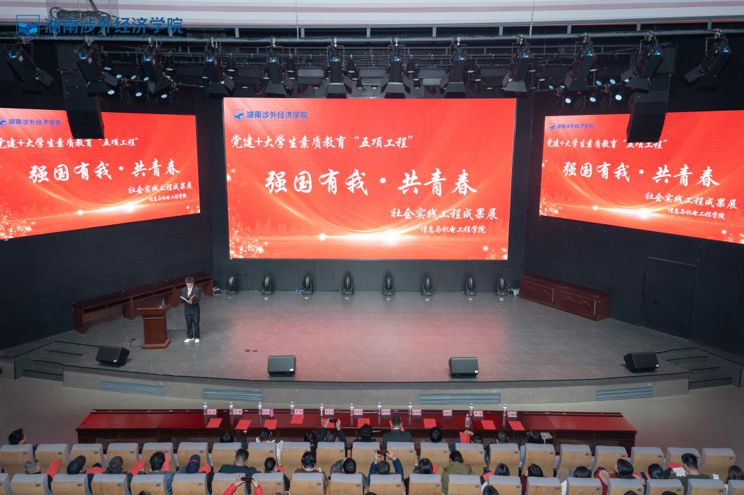 12月5日晚,我校信息与机电工程学院在世纪讲坛举行“强国有我·共青春”党建+大学生素质教育“五项工程”社会实践成果展示活动。学生工作部部长贾青彦、副部长徐京都、信息与机电工程学院院长陈继锋、党总支书记唐志文以及师生代表500余人参加了展示活动。