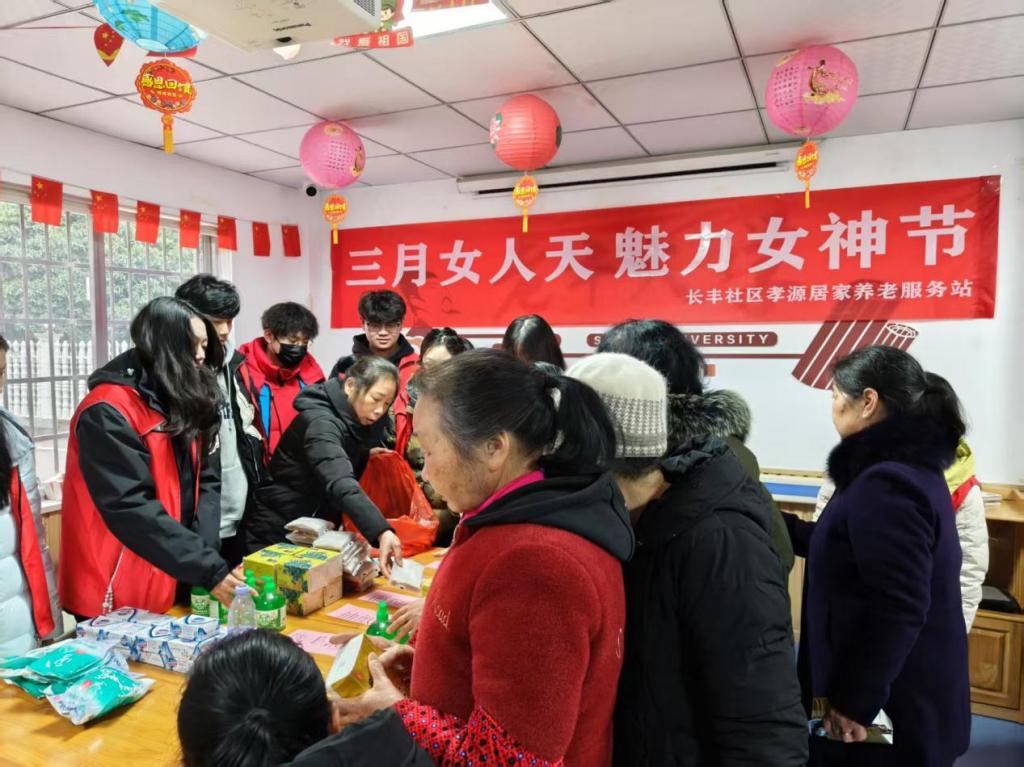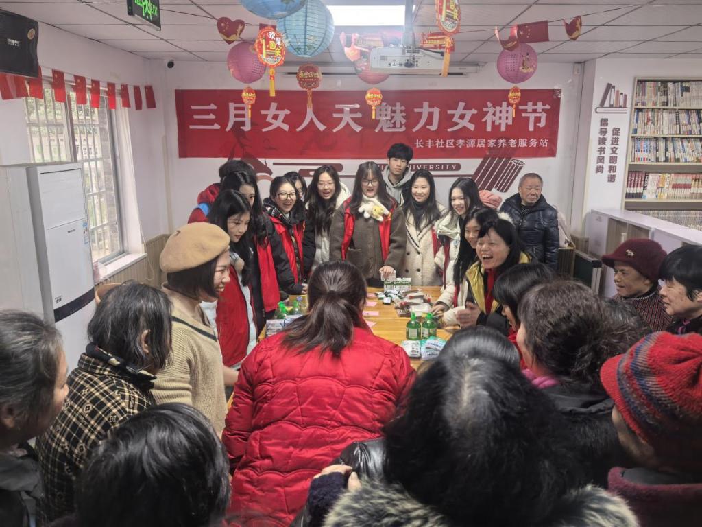 3月6日,为庆祝第115个“三八”国际妇女节,我校音乐学院“沐爱而行”党员志愿服务队走进党建共建基地麓谷街道长丰社区活动中心,以“弘扬志愿精神,传递女性关怀”为主题,开展节日特别活动。活动旨在通过趣味互动与暖心服务,向社区女性传递节日祝福,营造尊重与关爱的社区氛围。