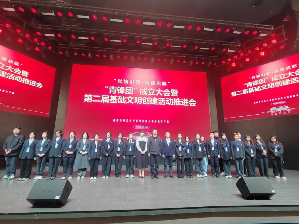 3月18日晚,我校外国语与国际教育学院在世纪讲坛举行“青锋团”成立大会暨第二届“基础文明创建月活动”推进会,深入贯彻学校“党建+大学生素质教育五项工程”,落实“青锋计划”育人目标。学校学生工作处副处长徐京都、外国语与国际教育学院党总支书记杨建波出席,青锋团指导老师、全体辅导员及相关学生代表200余人参会,外国语与国际教育学院团总支书记赵晗宇主持会议。