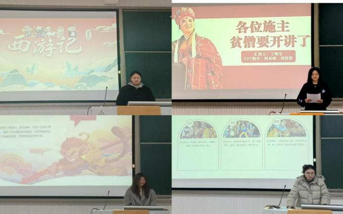 活动中,同学们摒弃传统的故事复述,借助PPT,以全新视角解构这部经典神魔史诗。从宝象国公主的经历探讨女性意愿与权利,在三借芭蕉扇里学习孙悟空的谈判技巧,于车迟国斗法中深刻剖析虎鹿羊三仙因对规则解读不足而败北的原因。同学们运用硬核学术框架,为狂野的西游想象赋予了新内涵。