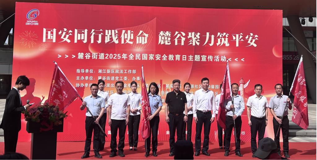 4月15日上午,在第十个全民国家安全教育日来临之际,我校师生代表在保卫处综治办主任陈波以及商学院李魁老师的带领下,参加了由麓谷街道主办的“2025年全民国家安全教育日”主题宣传活动。此次活动旨在增强全民国家安全意识,推动国家安全理念深入人心。