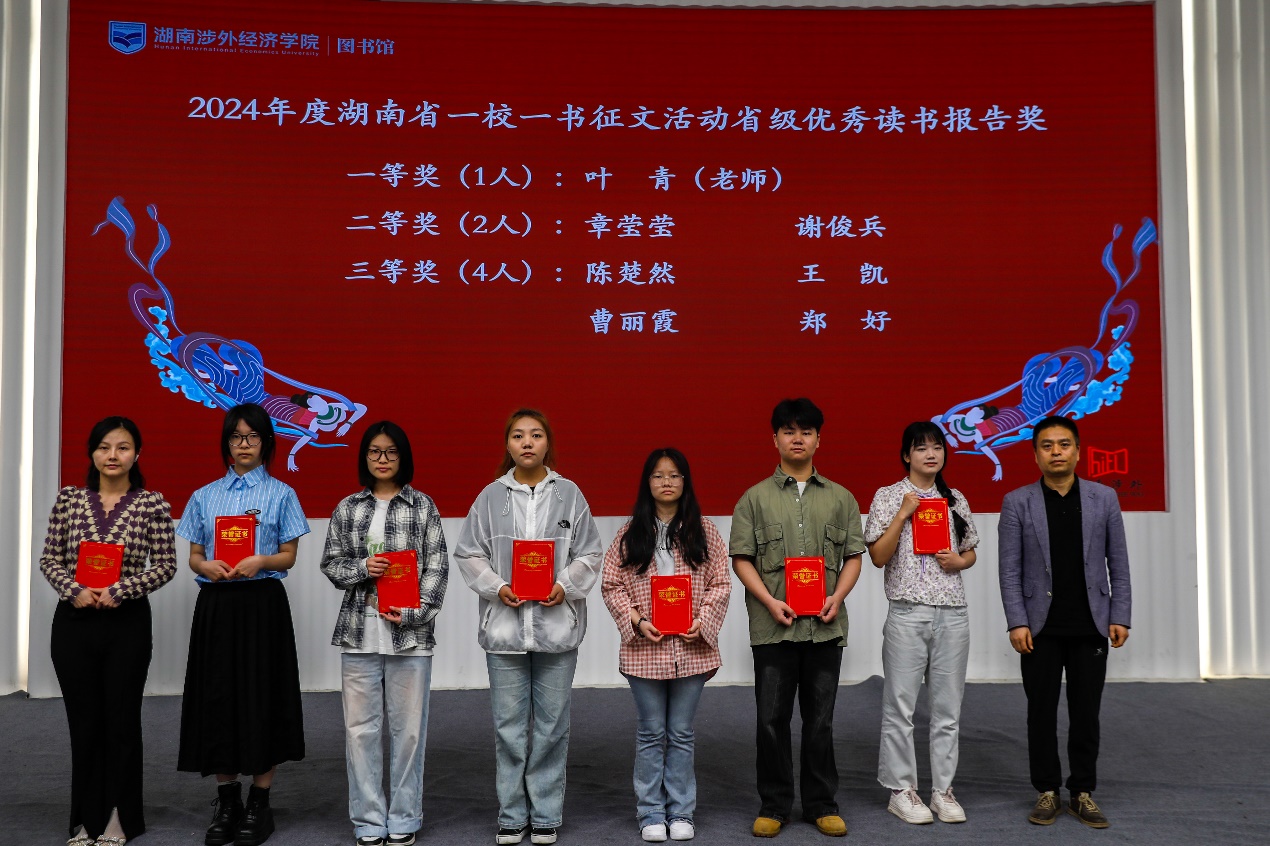 会上,学生工作处处长贾青彦、教务处处长陈善敏、图书馆馆长王昊等人分别为2024年度“书香太阳城娱乐”系列读书活动中表现突出的典型进行优秀表彰,同时还为在2024年度湖南省“一校一书”阅读推广活动获奖集体和个人进行了颁奖与表彰。