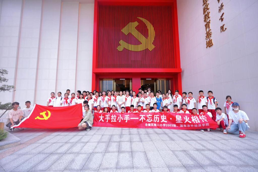 为深化爱国主义教育、培育时代新人,5月18日,我校联合湖南财政经济学院、岳麓区第二小学、岳麓区实验小学(西校区),在我校党建与思政教育基地开展“不忘历史,星火传承”场馆育人实践活动。此次活动依托党建与思政教育基地平台,推动大中小学思政教育有机衔接,构建起全方位、多层次、宽领域的思想政治教育新格局 。
