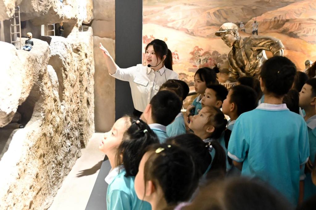 “地道战”展区内,真实的地道构造让同学们仿若穿越回烽火岁月。一名小学男生激动地表示:“走在狭窄的地道里,真切感受到抗日军民的智慧和勇气,他们用这样的方式与敌人周旋,太了不起了!”。