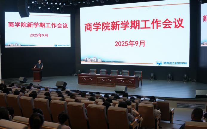 9月16日下午,我校商学院在世纪讲坛召开学院新学期工作会议。常务副校长兼商学院院长陈斌,商学院党总支书记李向明、教学副院长周奕,全体辅导员、行政人员及任课教师参加会议,会议由陈斌副校长主持。